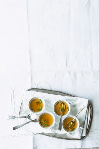 Nach 15 Min. köcheln lassen entfernst du die Gewürze. Jetzt kannst du die Pilzessenz mit dem Sherry, Salz und Cayennepfeffer abschmecken und mit Petersilie bestreut servieren. Voilà! Fertig ist die die perfekte Vorspeisen-Suppe als Auftakt für ein Menü.