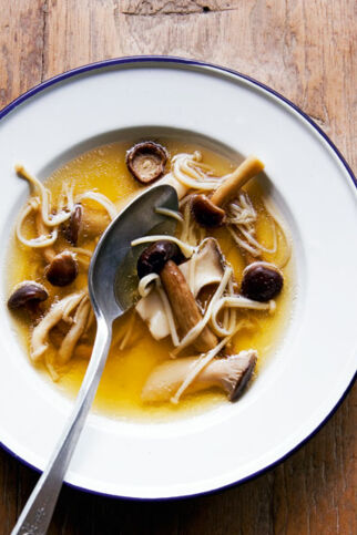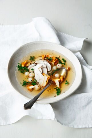 Klare Suppe aus Pilzessenz zubereiten: so geht's