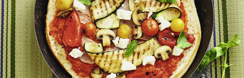 Wenn du hier clever Zutaten austauschst und z. B. auf Low-Carb-Blumenkohl-Boden setzt, kannst du einiges an Kalorien sparen. Eine weitere Möglichkeit – und perfekt für faule Köche – ist ein Boden aus Fladenbrot. Unsere schnelle Pfannenpizza mit Schinken zeigt dir, wie es ganz einfach geht.