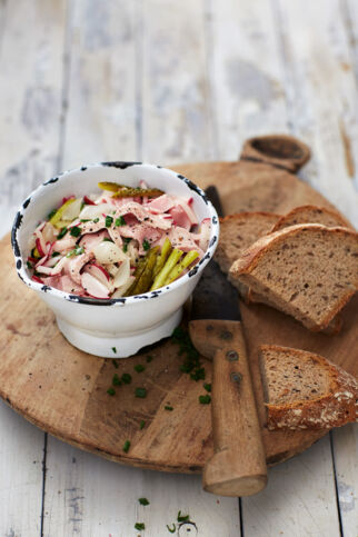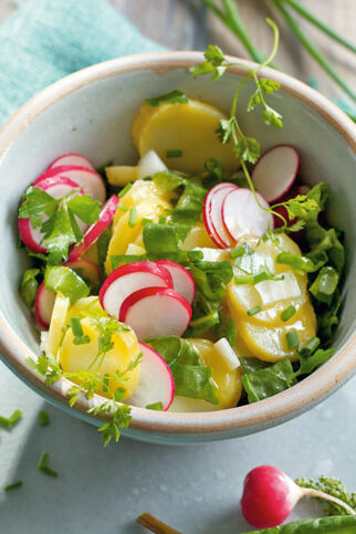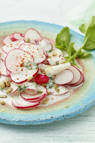 Natürlich gibt es noch unzählige Varianten mit weiteren Zutaten, etwa Bulgursalat mit Radieschen, Linsensalat mit Radieschen oder Brotsalat mit Radieschen. Probier dich durch! Übrigens kannst du jeden Salat mit ein paar Kräutern als Deko aufpimpen: von Minze über Basilikum und Kresse bis hin zu feinen Röllchen von Schnittlauch.