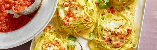 - Spaghetti, Bandnudeln – als Nudelnester drapiert oder mit Nudelsauce