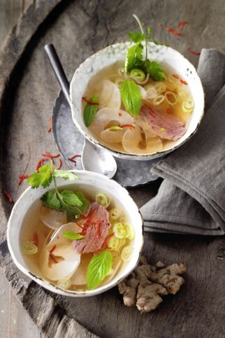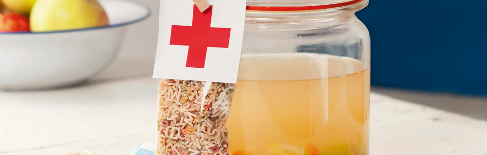 Der Klassiker unter den Erkältungsrezepten. Die Hühnersuppe tut nicht nur gut, sie hilft tatsächlich, deine Erkältung zu lindern und die Krankheitsdauer zu verkürzen, wie Wissenschaflter längst bewiesen haben. Dafür muss die Suppe jedoch auch selbst mit Suppenhuhn und Gemüse gekocht werden. Fertigprodukte sind hier tabu.