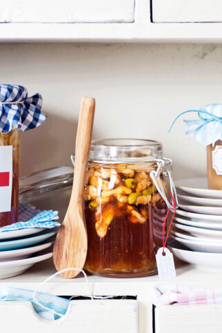 Vor allem bei Husten solltest du auf Honig zurückgreifen, denn er wirkt antibakteriell und hilft, das Kratzen im Hals zu lindern. Jedoch solltest du den Honig nicht erhitzen, da sonst die Wirkstoffe verloren gehen. Am besten also einen Löffel pur genießen, als Aufstrich oder im Smoothie.