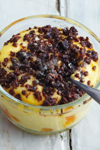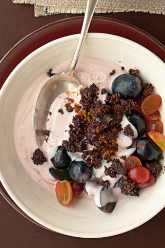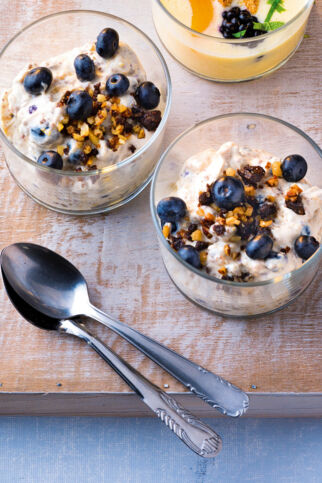 Auch für Nachtische ist Schwarzbrot eine innovative Ergänzung: Zusammen mit Butter und Nüssen ergibt es einen tollen Crunch, den du über Rote Grütze geben oder als Schicht in einem fruchtigen Trifle einsetzen kannst. Auch als Bratapfelfüllung macht Pumpernickel was her.