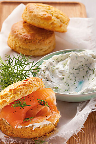 Spätestens wer einmal zur klassischen Tea Time in England war, kennt die krustenlosen Brötchen die üblicherweise mit Clotted Cream (eine Art Streichrahm, der geschmacklich etwas an Mascarpone erinnert) und am besten noch lauwarm gegessen oder besser gesagt, genossen werden. Aber nicht nur süß, auch herzhaft mit Ei und Lachs sind sie ein Genuss, den wir dir nicht vorenthalten möchte.