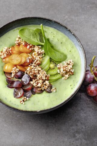 Am besten schmecken Smoothies und Smoothie Bowls im Sommer, wenn viel verschiedenes frisches Obst zur Hand ist. Unsere Lieblinge sind frische Beeren: Erdbeeren, Himbeeren, Blaubeeren – köstlich und fruchtig frisch in einer Bowl. Wenn mal keine frischen Früchte der Saison zur Verfügung stehen: gefrorene Beeren tun es auch. In diesem Fall verwendest du am besten einen leistungsstarken Mixer zum Pürieren, der auch die TK-Früchte zerkleinert bekommt. Praktisch: Dann ist deine Bowl auch gleich angenehm gekühlt. Und genau wie beim Trendgetränk Grüner Smoothie, kannst du Smoothie Bowls auch mit Gemüse zubereiten bzw. einer Mischung aus Obst und Gemüse. Wenn du dich für diese noch gesündere Variante interessierst, schau dir mal die Detox Avocado-Smoothie Bowl oder die Green Lupi-Smoothie-Bowl mit Spinat, Banane und Lupine an.