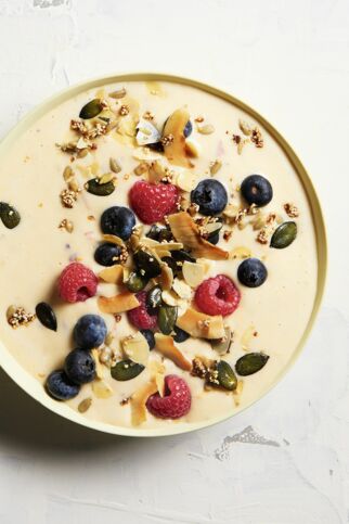 Leuchtend gelb, beerig rosa oder auch mal gesund grün: Wenn der Morgen schon mit so viel Farbe in der Frühstücksschüssel beginnt, kann der Tag ja nur gut werden! Und wie kriegt man das hin? Mit Smoothie Bowls! Das sind einfach etwas zähflüssigere Smoothies, die in einer Bowl (also Schüssel) angerichtet werden. Sie überzeugen mit ihrer cremigen Konsistenz und können nach Belieben mit Toppings dekoriert werden: Nüsse, Beeren, Bananenscheiben, Chiasamen, Kakao Nibs ... Die Bowls liefern dir Proteine, Mineralstoffe und Vitamine – und damit Kraft für den anstehenden Tag!