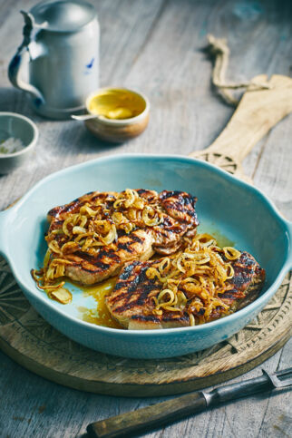 - Braumeister-Schweinesteaks mit Zwiebel-Bier-Marinade