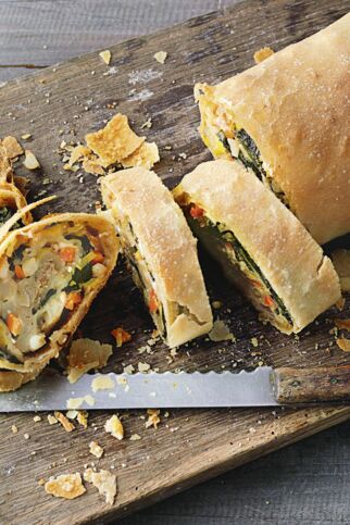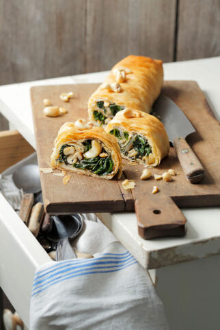 Veganer Paprika-Fenchel-Strudel mit Macadamiacreme