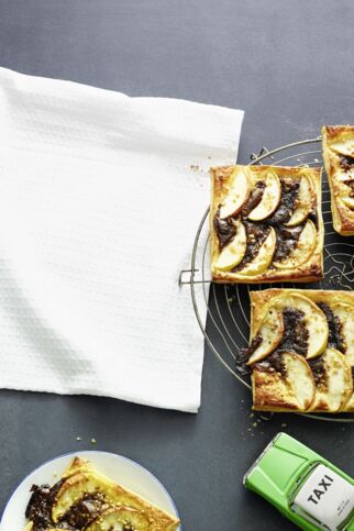 Du kannst Tartes aber auch genauso gut mit Blätterteig zubereiten. Wenn du den fertigen aus dem Kühlregal verwendest, ist die Tarte noch schneller fertig.