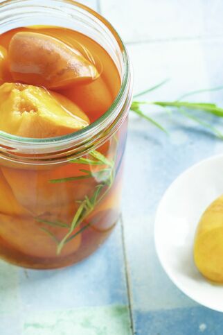 Eingemachte gebackene Pfirsiche mit Rosmarin