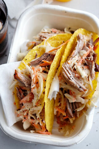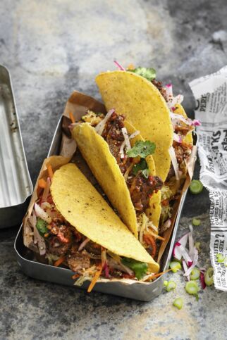 Tacos sind ebenso wie Tortillas in der mexikanischen Küche ein Klassiker. Du kannst sie mit Hackfleisch, Gemüse – wie Tomate oder Paprika – oder auch Pulled Pork füllen.