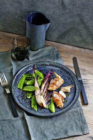 Geschmorter Trevisano mit Speckwachtel