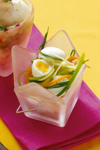 Wachteleier auf Gemüsetürmchen