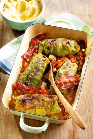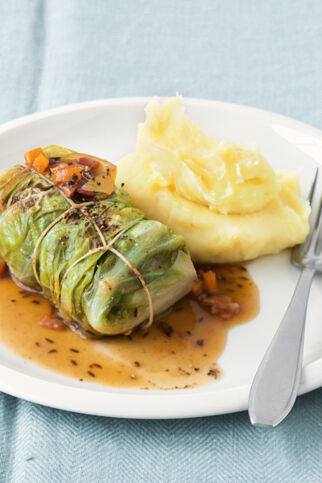 Der Kohl schmeckt lecker als klassische Krautwickel wie bei Oma früher: Dazu brauchst du die äußeren Blätter, die mit einer Mischung aus Hackfleisch und Zwiebeln gefüllt werden. Dazu gibt es am besten Kartoffeln oder Kartoffelbrei. Wir haben sogar ein Rezept für vegetarische Kohlrouladen dabei.
