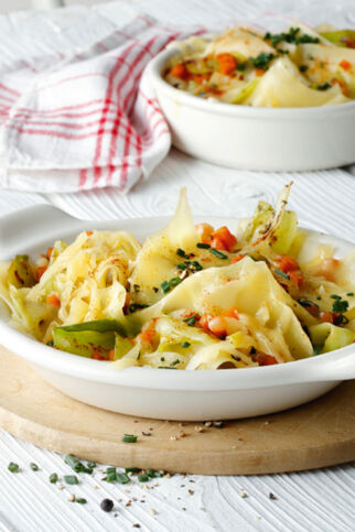 Sogar Nudeln schmecken in der Kombination mit geschmortem Weißkohl wunderbar. Wenn es die volle Ladung Gemüse sein soll, empfehlen wir diese Weißkohl-Tajine: Hier kommen als Zutaten noch Fenchel, Möhren und rote Paprikaschoten dazu. So raffiniert hast du ihn bestimmt noch nicht serviert!