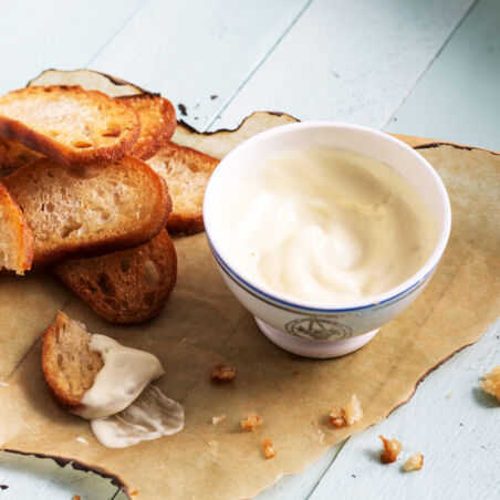 Die französische Kult-Knoblauch-Creme hält sich im Kühlschrank bis zu zwei Tagen. Sie schmeckt toll zu Gegrilltem oder Ofengemüse.
