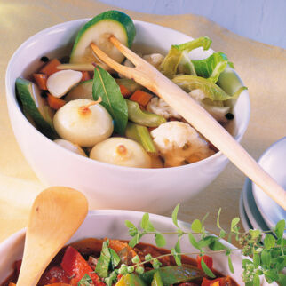 Zwiebel und Knoblauch schälen, fein würfeln. Im Öl bei mittlerer Hitze 5 Min. dünsten. Zitronensaft und Püree dazugeben. Unter Rühren 4-5 Min. einkochen lassen. Mit Salz und Cayennepfeffer würzen.