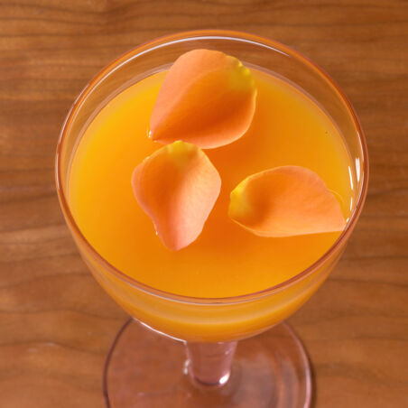 6 cl Clementinensaft, Rosenwasser, Zuckersirup sowie 4 Eiswürfel zum Lycheemus in den Shaker geben. Verschließen und ca. 20 Sek. kräftig schütteln. Den Drink durch das Barsieb in die Cocktailschale gießen und sofort servieren.