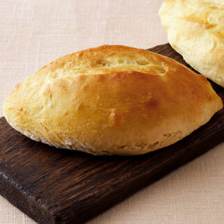 Den Teig halbieren, die Hälften zu zwei länglichen, an den Enden spitz zulaufenden Broten formen. Ein Backblech fetten und mit Mehl bestreuen. Die Brote darauf legen und längs mit einem scharfen Messer ca. 2 cm tief einschneiden. Mit einem leicht feuchten Tuch bedecken und nochmals 30 Min. gehen lassen.