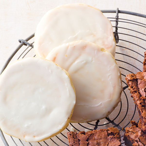 Inzwischen aus Puderzucker, Sahne und Zitronensaft einen festen Guss anrühren. Diesen mit einem Messer auf die flachen Seiten der Amerikaner streichen und trocknen lassen.