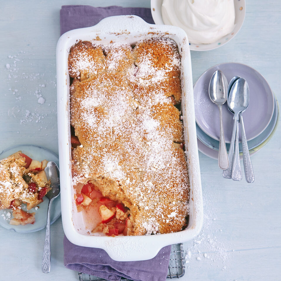 Teig auf den Äpfeln verteilen. Den Cobbler im heißen Backofen (Mitte) 25 Min. backen, bis der Teig leicht gebräunt ist.