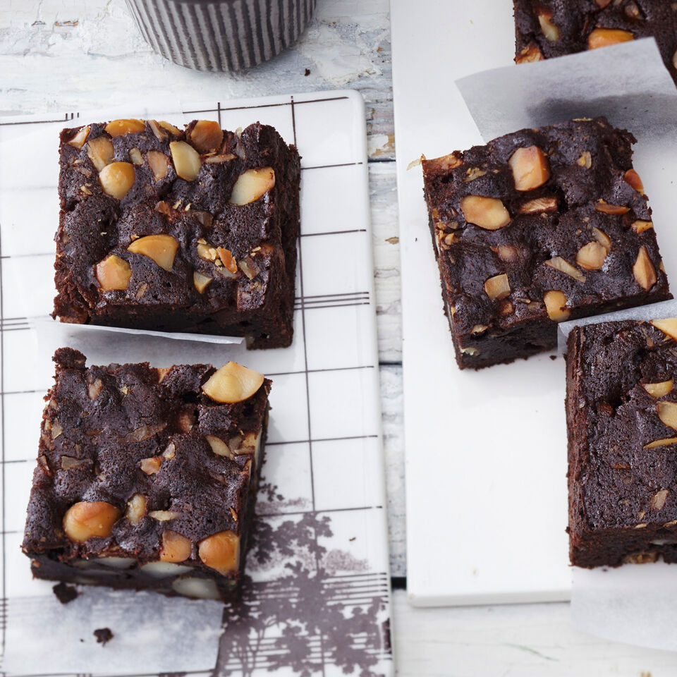 Diese Brownies sind richtige Kernbeißer. Die salzigen Macadamias sorgen zudem für interessanten Kontrast zum Schokogeschmack.