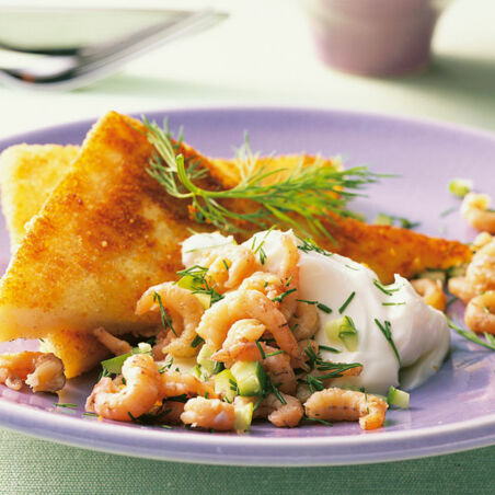 Arme Ritter von Nordseekrabben mit Dill-Gurken-Creme