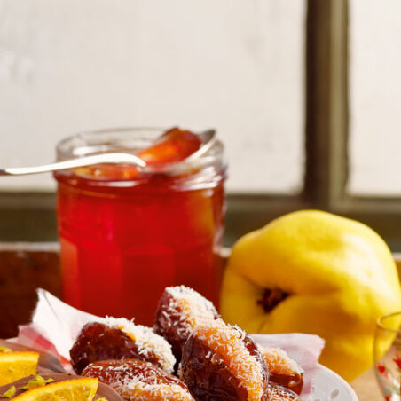 Aus Eins mach Zwei: Zuerst wird feines Quittengelee fürs Weihnachtsfrühstück gekocht. Anschließend wird aus dem Fruchtmus ein herbes Konfekt gezaubert.