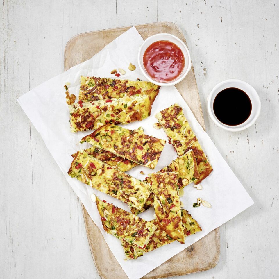 In einer Pfanne 1 EL Öl erhitzen, die Reismischung darin zugedeckt in ca. 4 Min. stocken lassen. Wenden, 1 EL Öl dazugeben und in weiteren 3-4 Min. fertig garen. Dazu schmeckt süßsaure Sauce.