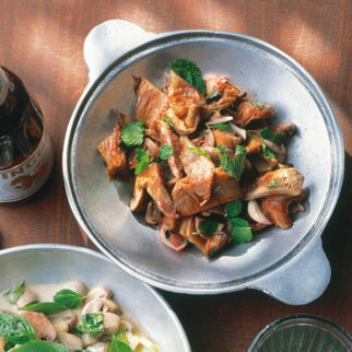 Austernpilze putzen und eventuell mit Küchenpapier abreiben. Harte Stiele entfernen, die Pilze quer in Streifen schneiden. Maiskolben waschen und abtrocknen, die Körner mit einem scharfen Messer von den Kolben schneiden. Spinat waschen, gut abtropfen lassen und in 2 cm breite Streifen schneiden.