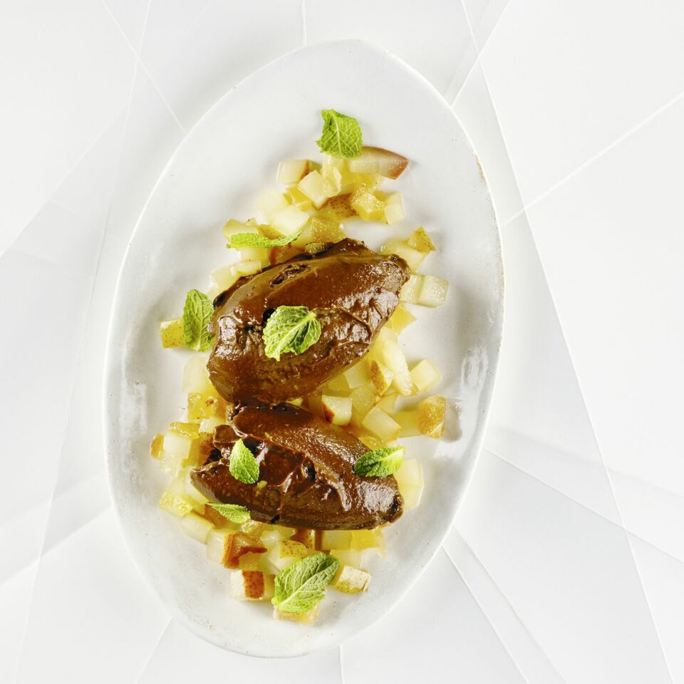 Das fruchtig-süße Kompott ist die perfekte Ergänzung zur herben Schokoladen-Mousse.