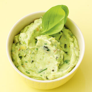 Knoblauch schälen und mit Zitronenschale und Petersilie sehr fein hacken. Mit 3-4 TL Zitronensaft zur Avocado rühren und mit Salz und Pfeffer abschmecken.
