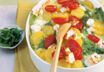 Kartoffeln gar kochen. Spinat waschen und trockenschleudern. Die groben Stiele aussortieren und den Rest grob hacken. Die Cocktailtomaten waschen und halbieren. Feta würfeln.