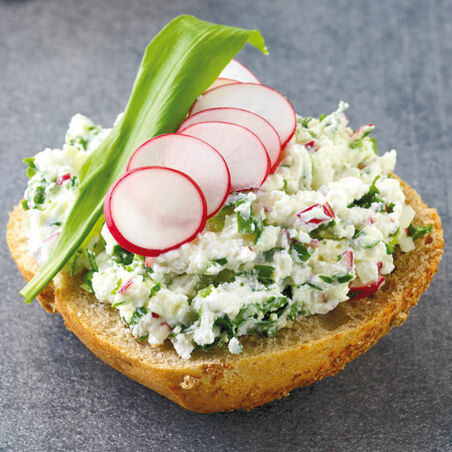 Frühlingsfrisch präsentieren sich die Roggen-Vollkornbrötchen mit Bärlauchcreme und knackigen Radieschen.