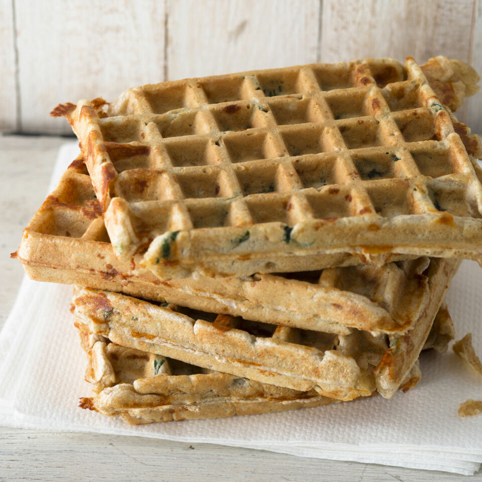 Genau richtig im Frühling: Die pikanten Waffeln mit frischem Bärlauch.