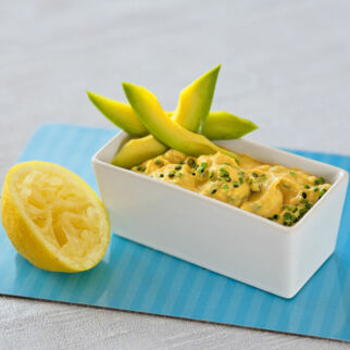 Zwiebel schälen und klein hacken. Avocados halbieren, Steine entfernen, das Fruchtfleisch mit Zwiebelwürfeln, Essig und Joghurt fein pürieren. Mit Salz und Pfeffer abschmecken. Schnittlauch waschen, trockenschütteln und in feine Ringe schneiden.