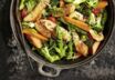Knackiges Gemüse und zartes Hähnchen kommen hier direkt aus der Pfanne auf den Teller. Ein fettarmes Mittagessen für Genuss ohne Reue.