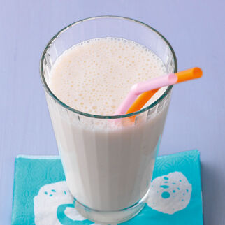 Die Banane mit Kokosmilch, Flocken und Ananassaft pürieren.