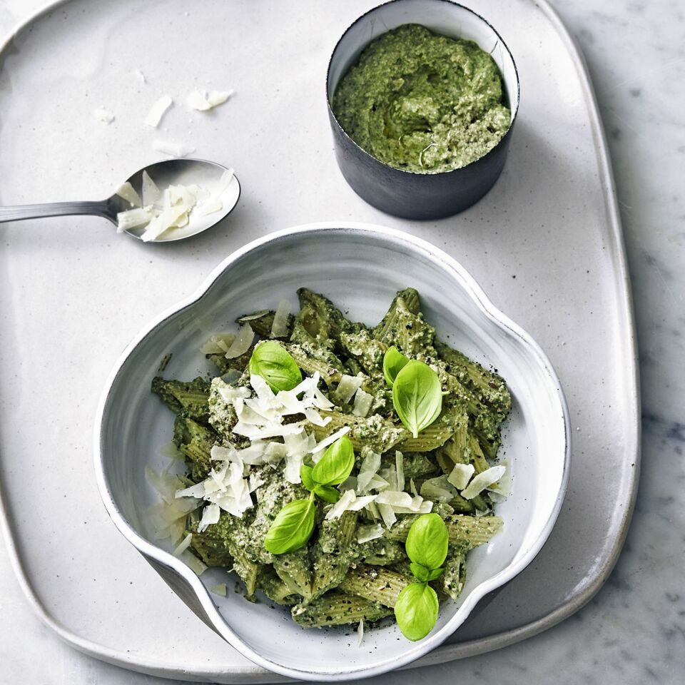 Pesto muss nicht immer gekauft werden, denn in unter 30 Minuten kannst du die ganz einfach ein eigenes grünes Pesto zu deinen Nudeln zaubern.
