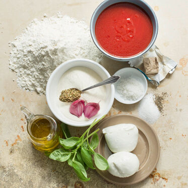 Diese Basispizza kann mit den Lieblingszutaten individuell abgewandelt werden.