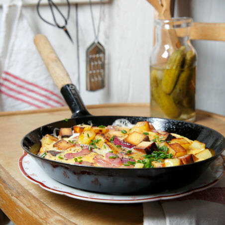 Dieses deftige Frühstück macht lange satt und ist super schnell und einfach zuzubereiten. Schmecken tut es auch noch urig lecker.