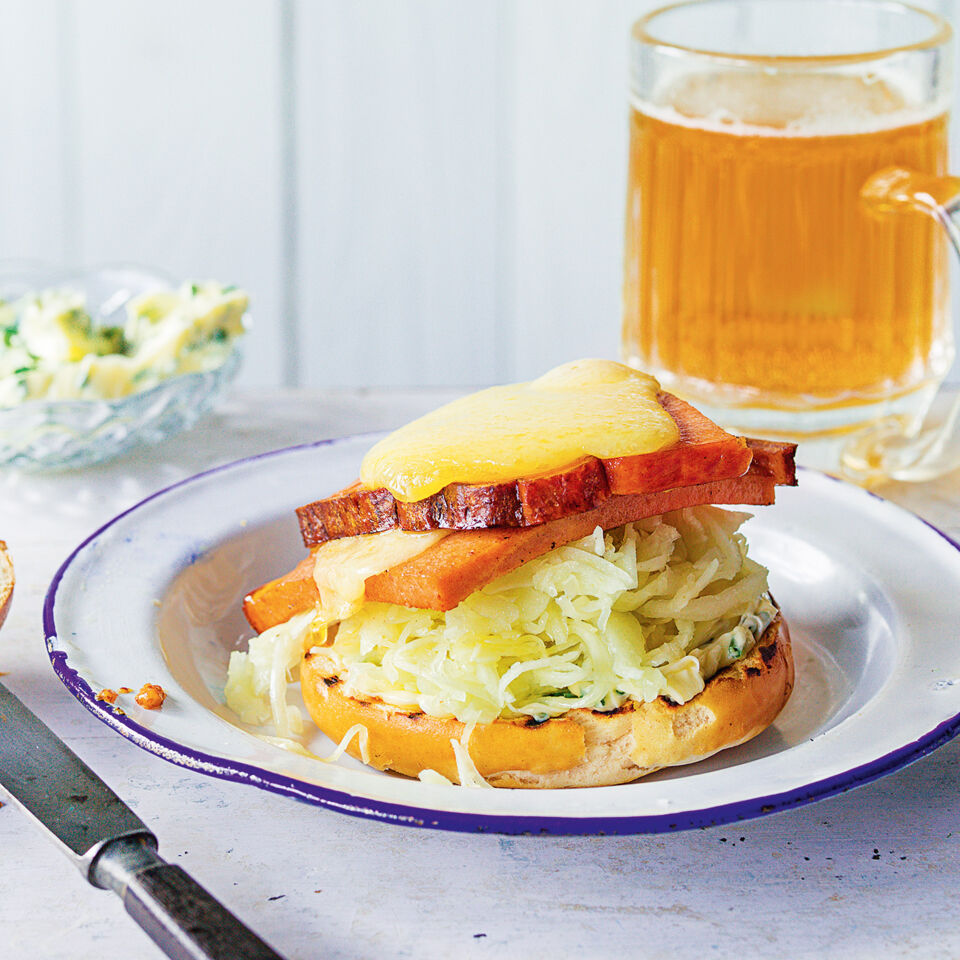 Schneller Alpenburger. Wie auf der Almhütte schmeckt dieser Burger, der ganz einfach zuzubereiten ist.