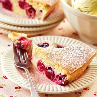 Clafoutis wird er in seiner französischen Heimat genannt und wenn man nach dem Backen nicht gut aufpasst, kann es sein, dass er schon aus der Auflaufform gegessen wird.