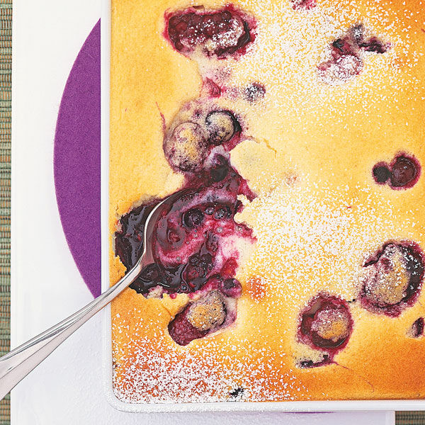 Die Eier trennen. Die Eiweiße mit den Quirlen des Handrührgeräts steif schlagen. Mehl mit Backpulver, übrigem Zucker und dem Salz mischen. Nach und nach Milch und Eigelbe unterrühren. Zum Schluss den Eischnee unterheben. Den Teig über die Beeren in der Form gießen. Clafoutis im Ofen (Mitte) etwa 30 Minuten backen, bis der Teig gebräunt ist. Dann noch kurz stehen lassen und zum Schluss mit Puderzucker bestäuben.