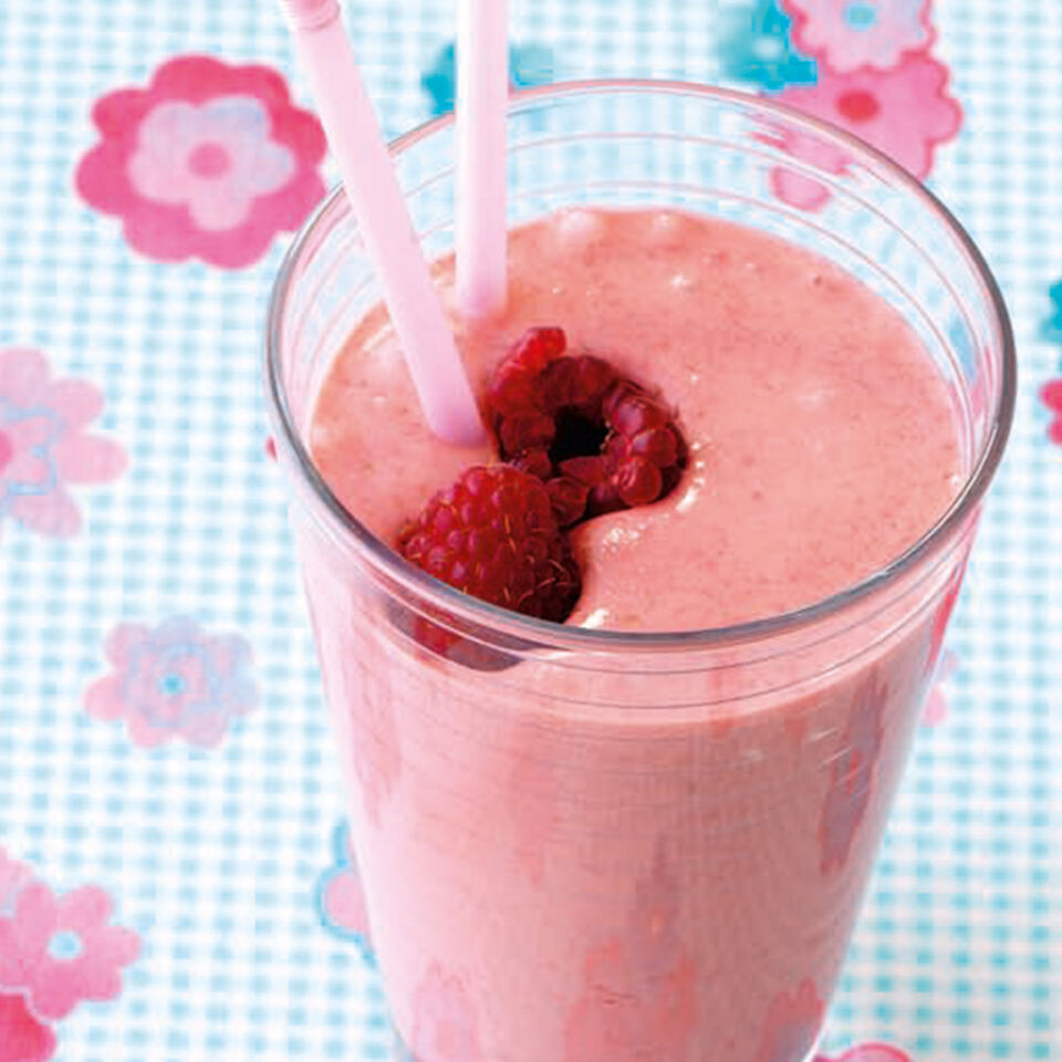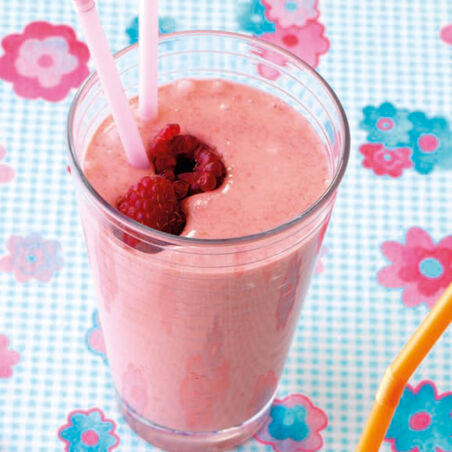 Himbeeren in einer schmalen hohen Schüssel pürieren, Vanillejoghurt und Milch vorsichtig untermixen. Nach Geschmack mit Zucker oder Fruchtsirup süßen. Drink auf vier hohe Gläser verteilen und mit Strohhalm servieren.