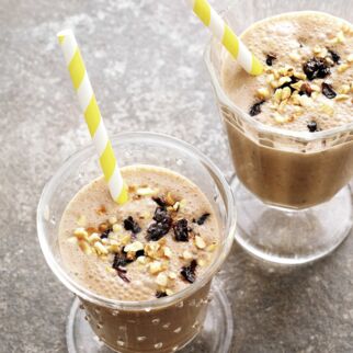 Alle Zutaten im Mixer pürieren und in eine große Tasse umfüllen.