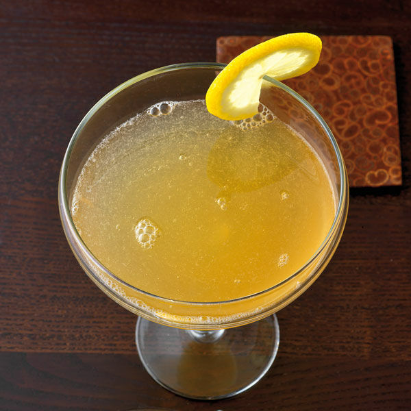 Den Inhalt des Shakers durch das Barsieb in die Cocktailschale gießen. Den Drink sofort servieren.