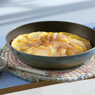 Sie können den Pfannkuchen auch ohne Birne backen und dazu Apfelmus, Obstsalat oder einen milden Fruchtaufstrich servieren.
