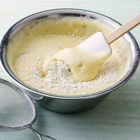 Das Waffeleisen vorheizen, die Backflächen dünn einfetten. 3 EL Teig in die Mitte der unteren Backfläche geben, das Waffeleisen schließen. Die Waffeln nacheinander in ca. 2 Min. goldgelb backen. Auf einen Kuchenrost legen und weiter so verfahren, bis der Teig verbraucht ist.